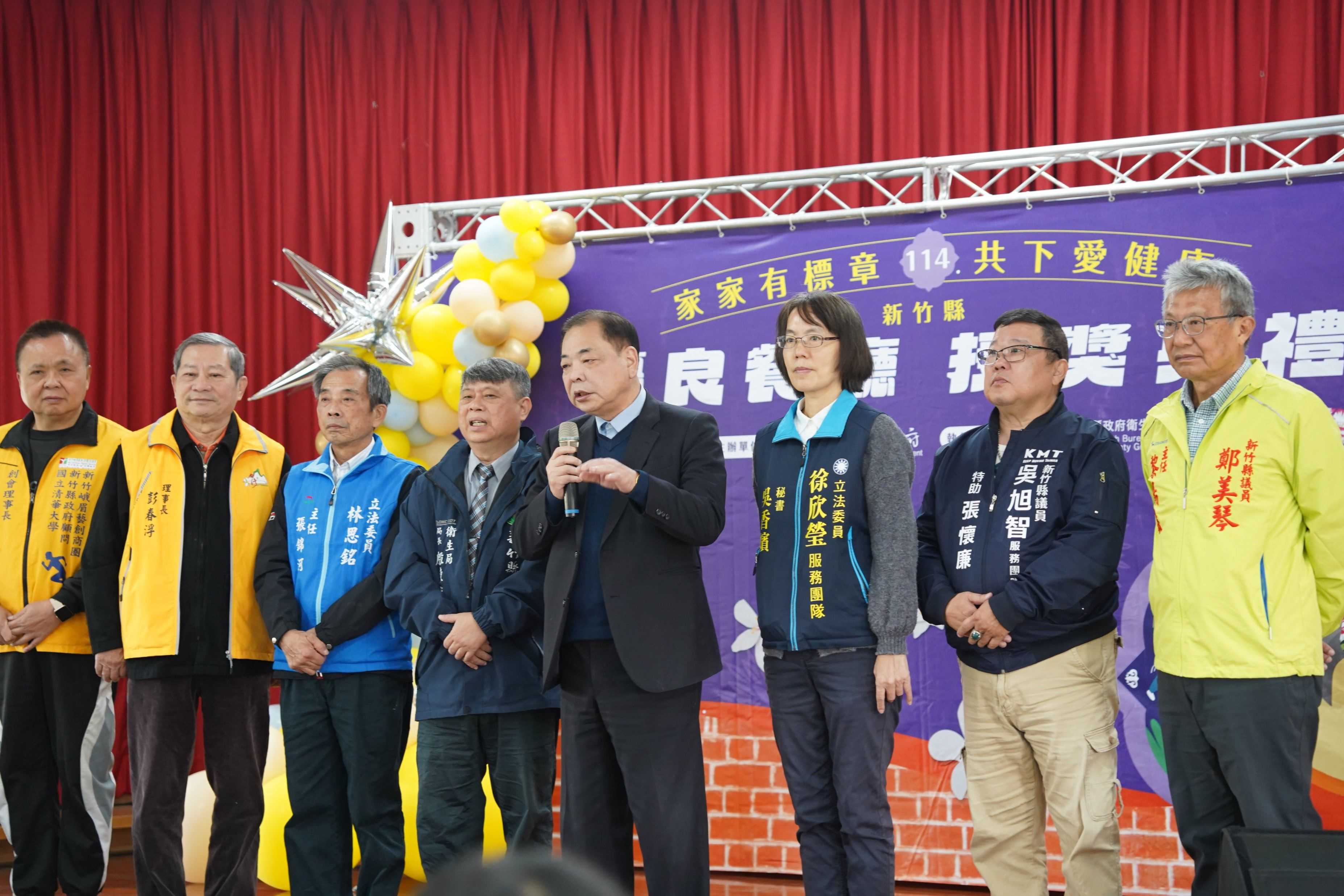 新竹縣114年「家家有標章 共下愛健康」優良餐廳評核於今 (15日)舉辦授獎典禮,此次評選出263家優級餐廳、7家良級餐廳,為讓民眾吃得安心又在地,衛生局依據餐飲衛生管理關鍵面向評核,新竹縣副縣長陳見賢出席授獎典禮時,期許透過評核讓民眾吃得安全又健康,也呼籲大眾優先支持優良餐廳。