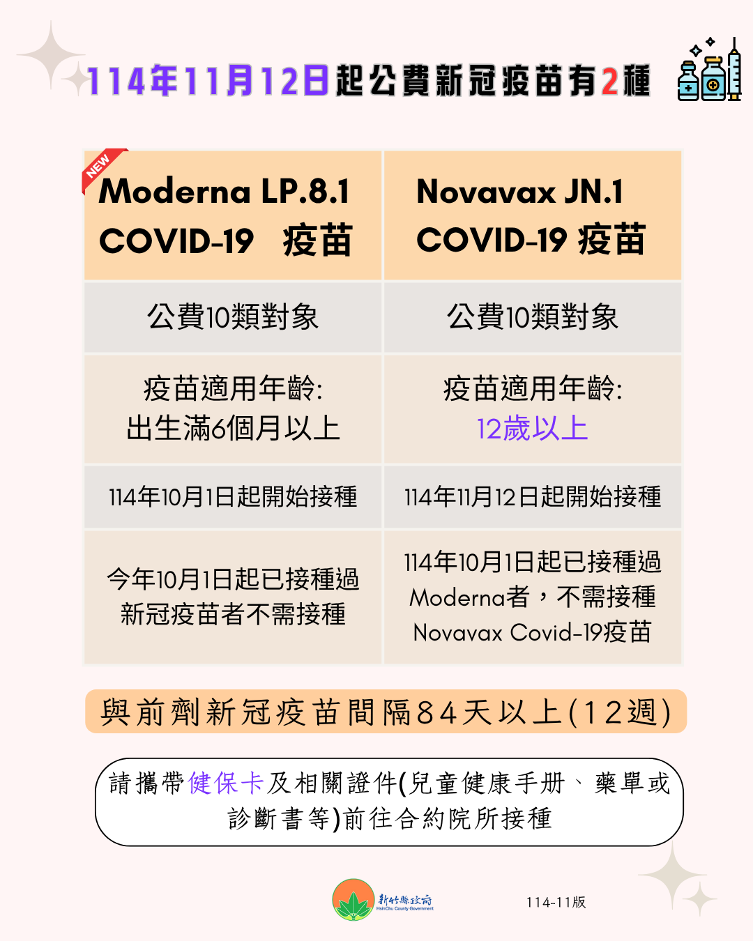 今年度10月1日起接種流感疫苗及新冠疫苗,公費對象如下: