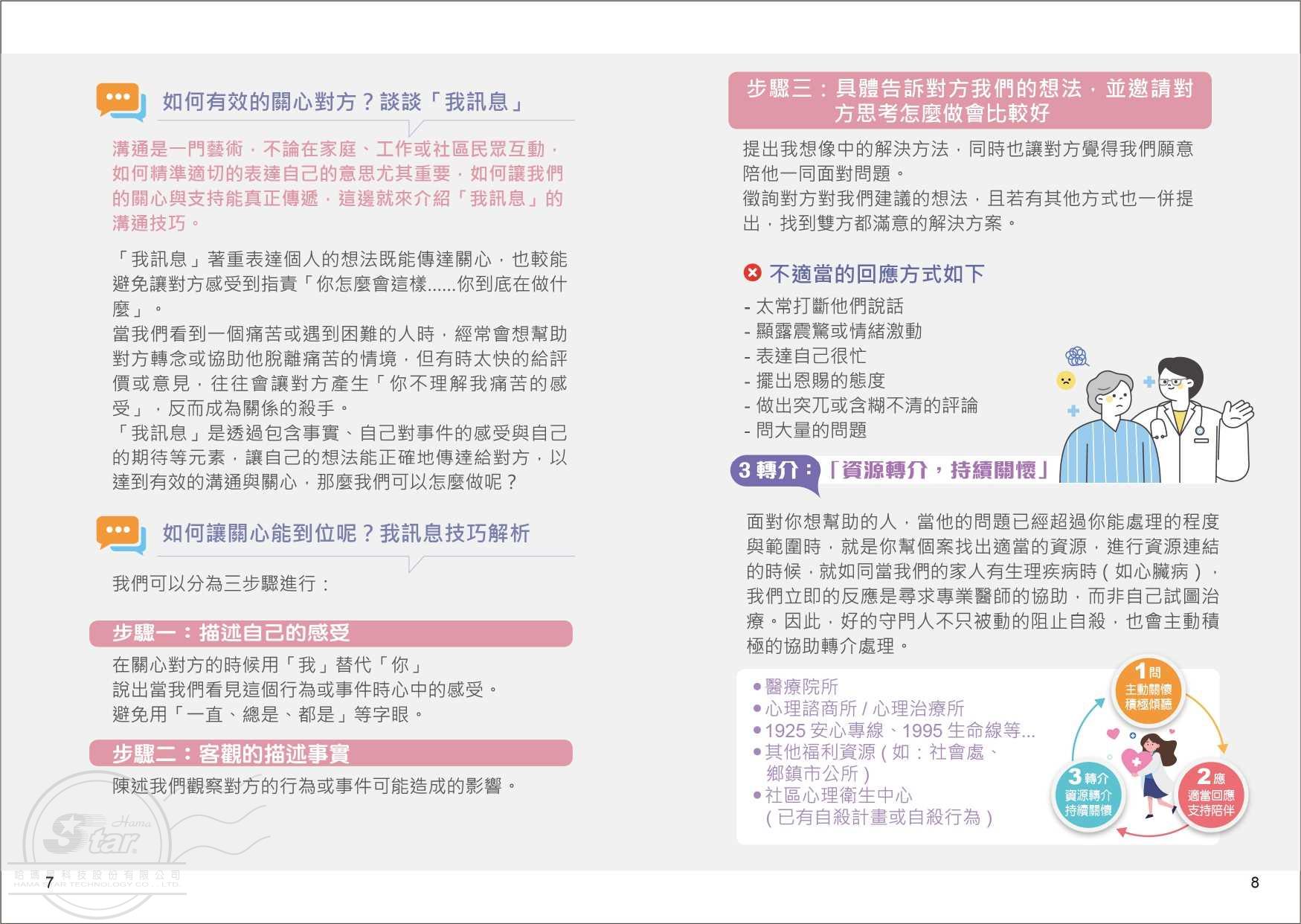 身邊有「心情歹歹」的親朋好友卻不知道該如何協助?想尋求專業資源卻不知道從何找起... 新竹縣新埔社區心理衛生中心為大家編制珍愛生命防治手冊 教您如何辨識自殺的迷思及徵兆、關懷的技巧,以及遇到事情該如何通報 同時也介紹「新竹縣社區心理衛生中心」及相關心理資源 ※若有需要紙本手冊,請洽新竹縣各心衛中心或分站!