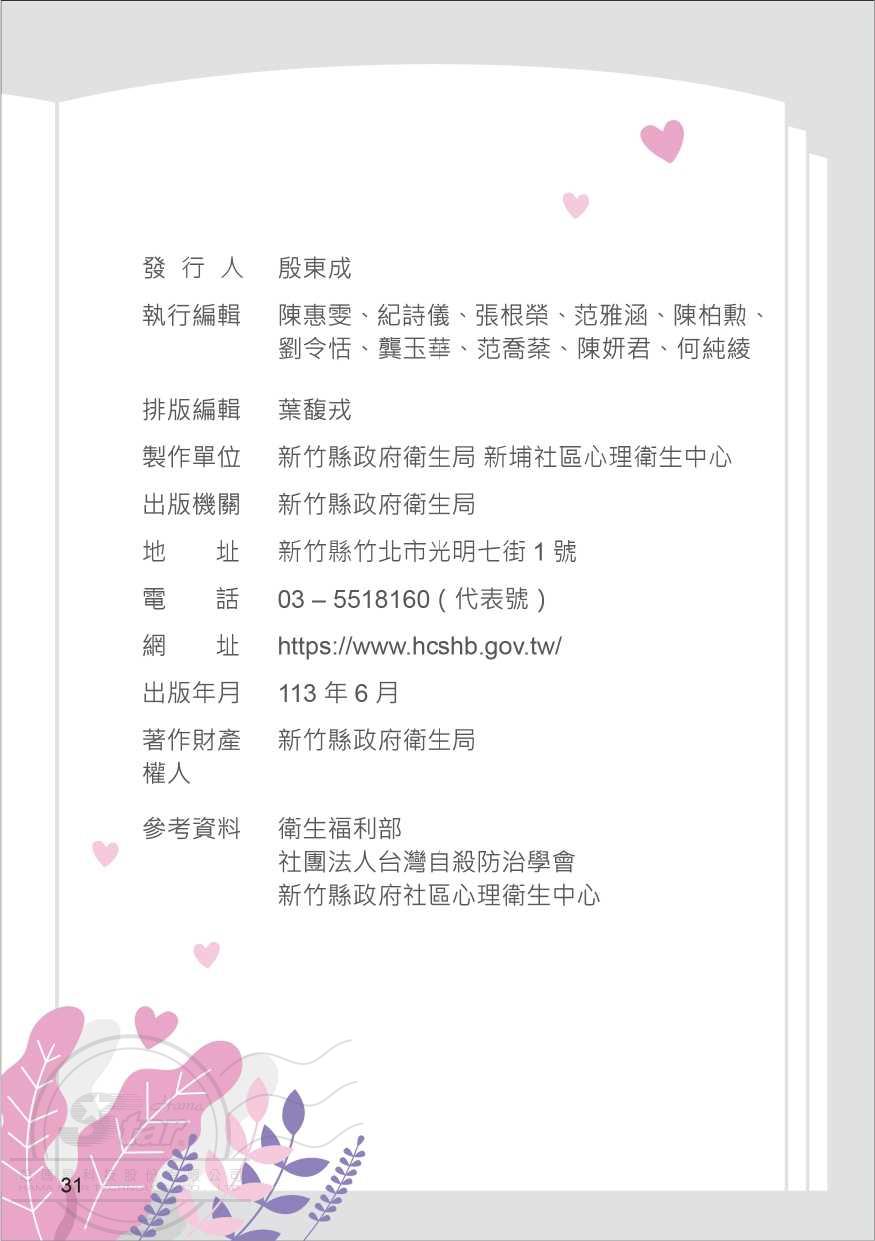 新竹縣新埔社區心理衛生中心為大家編制珍愛生命防治手冊