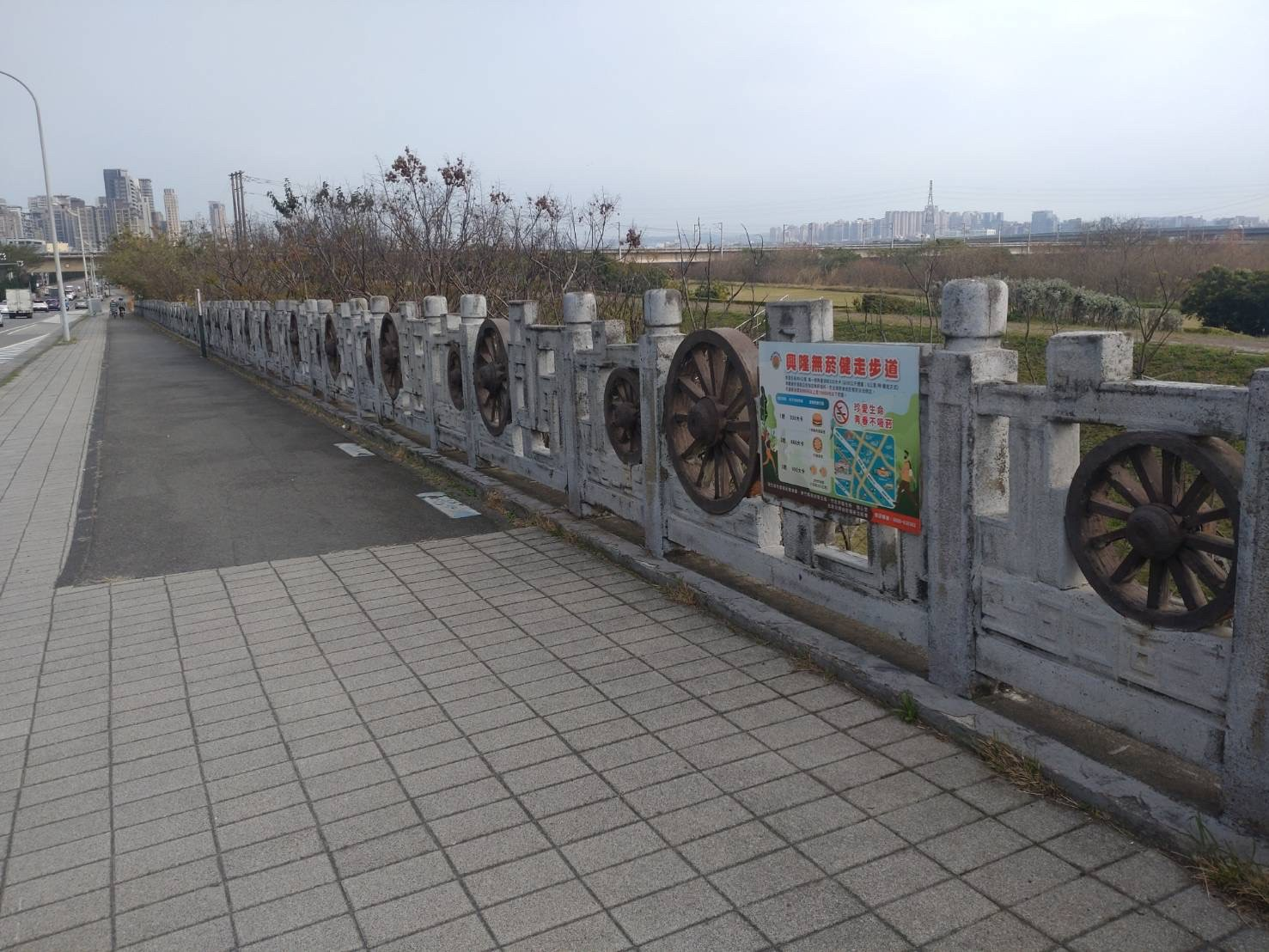 竹北興隆河堤健走及自行車步道位於竹北中華路與興隆路旁,沿著頭前溪,全程約6公里,西始自強南路,東至東興路,北側緊鄰高鐵區,人行道面積為8,046平方公尺,自行車道面積3,986平方公尺。