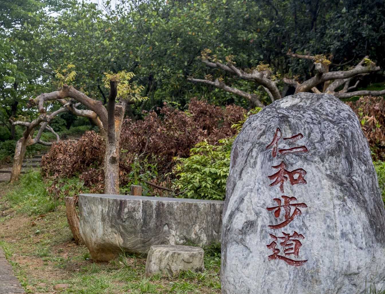 仁和步道全長約967公尺,沿途可見到許多過去裝甲兵演練用的壕溝及碉堡,一路上豐富的生態文化,並會行經一座桐花公園(姑娘廟旁),公園內整片的高大油桐樹結苞、盛開,健行之餘還可至百年湖口老街巡禮,欣賞歷史建築群。