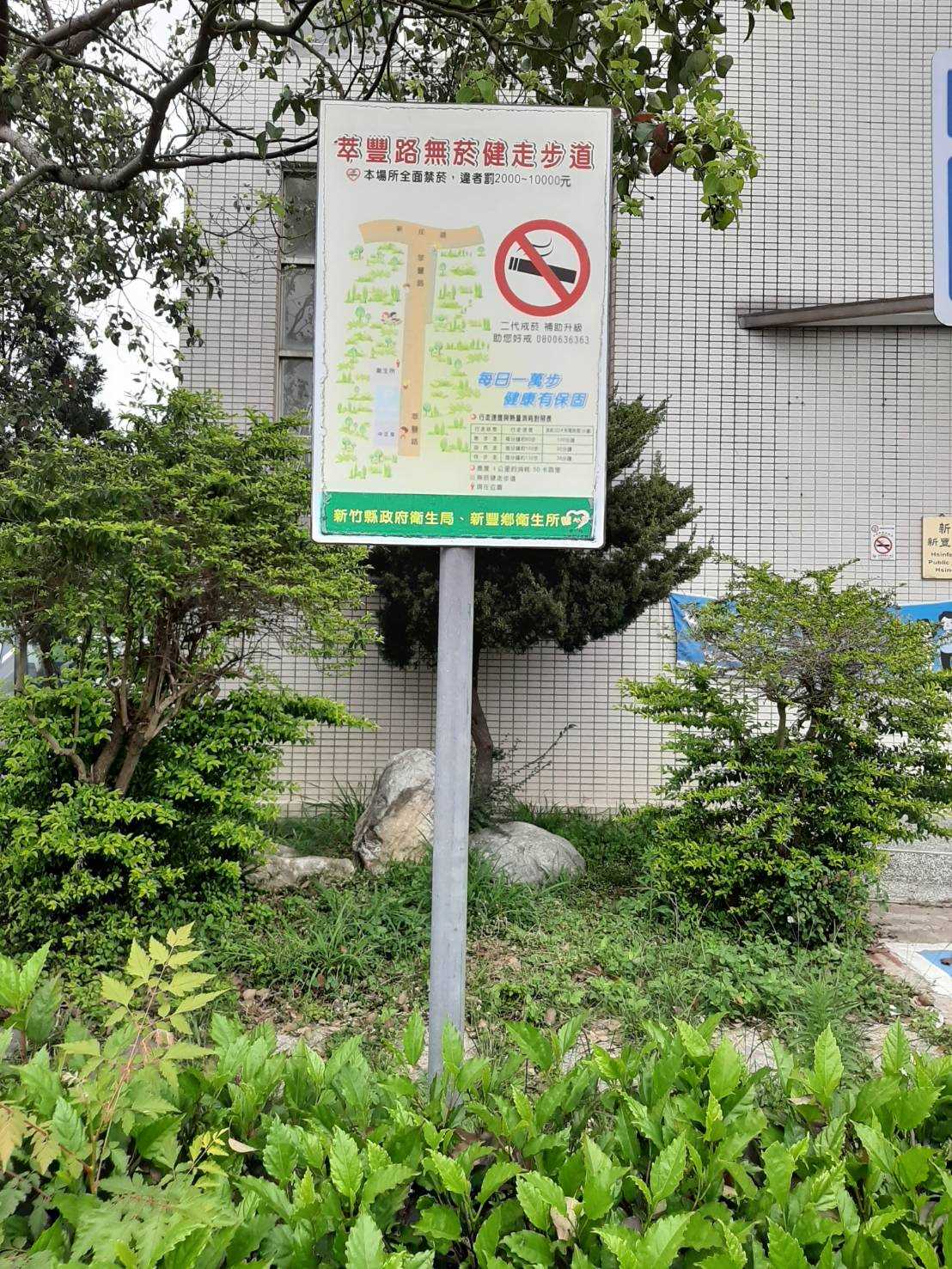 此步道就在衛生所前面;萃豐路是徐鄉長上任來積極打通的道路。並投入大量經費建設、維護新豐鄉野戰公園;積極營造重興村運動環境,除了活化舊營區之外在代表們大力支持下也建了座新的籃球場,讓許多的鄉親可以在空閒之餘一起運動增進人與人之間的情感。另外,更感謝重興村曾村長及志工不定期整理該區環境及維護周邊相關設施,讓更多的鄉親都願意來運動健走;除了平整的步道外還增設了許多的路燈,點亮萃豐大道,不論您要早上走或晚上走都可以,無論晴雨天只要您想走都是最佳運動的好所在。